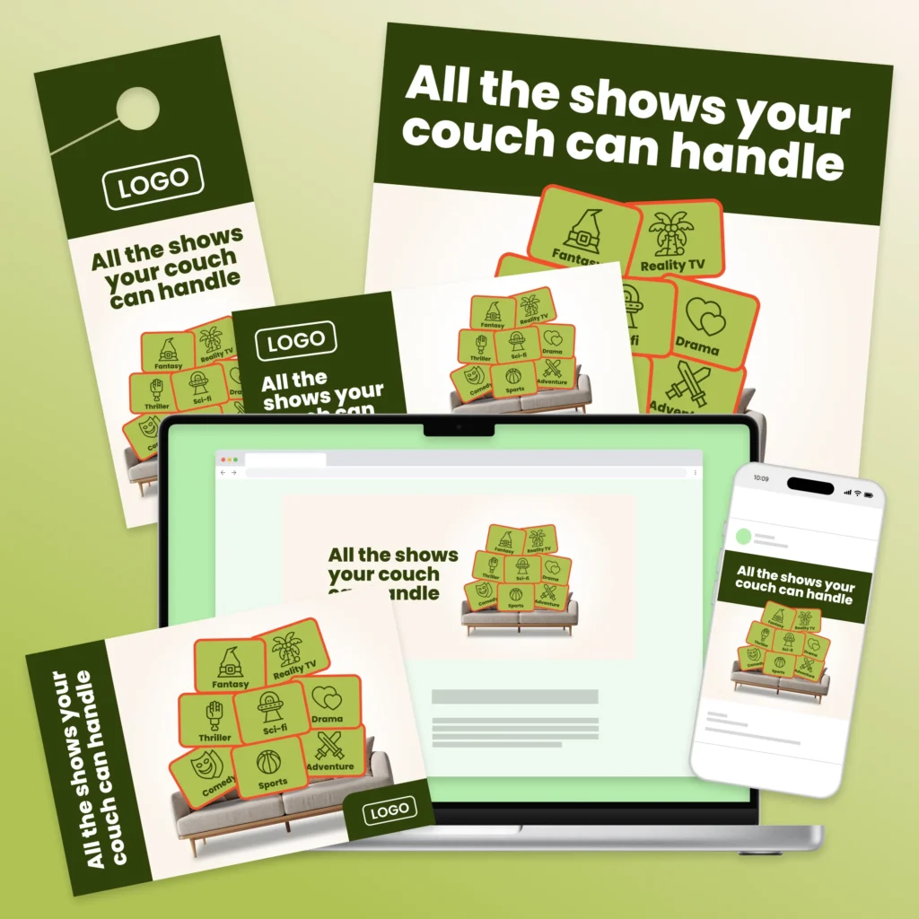 A funny, binge-happy campaign positioning Digital TV service as the perfect service for all the shows, sports, news, and local channels a home can handle, all wrapped in a local, friendly package your couch might regret. The theme centers on lovable overindulgence and the freedom to watch whatever you want without losing the local channels you care about.