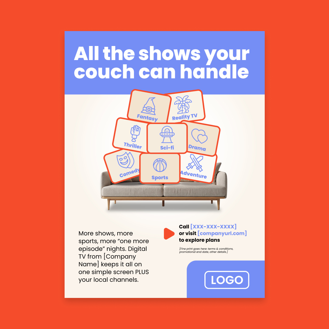 With customization, this piece will include your company name, logo, colors, website address, and phone number.