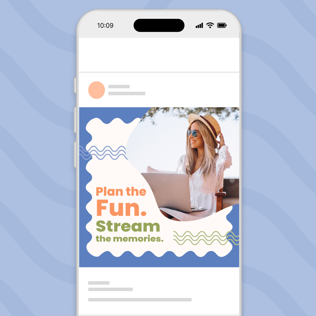 Help people find you when they’re deep in the woods of social media. Choose from square, portrait, and vertical formats. When you choose this option, we will customize the image and send you recommended text for a social media post/ad.