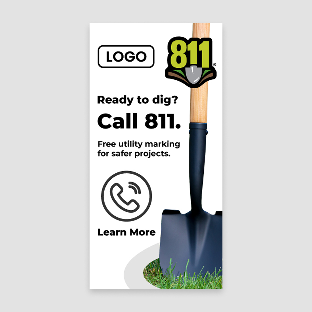 The colors and style for this campaign use the branding guidelines provided by 811, so colors are not customizable. With customization, this piece will include your company logo.