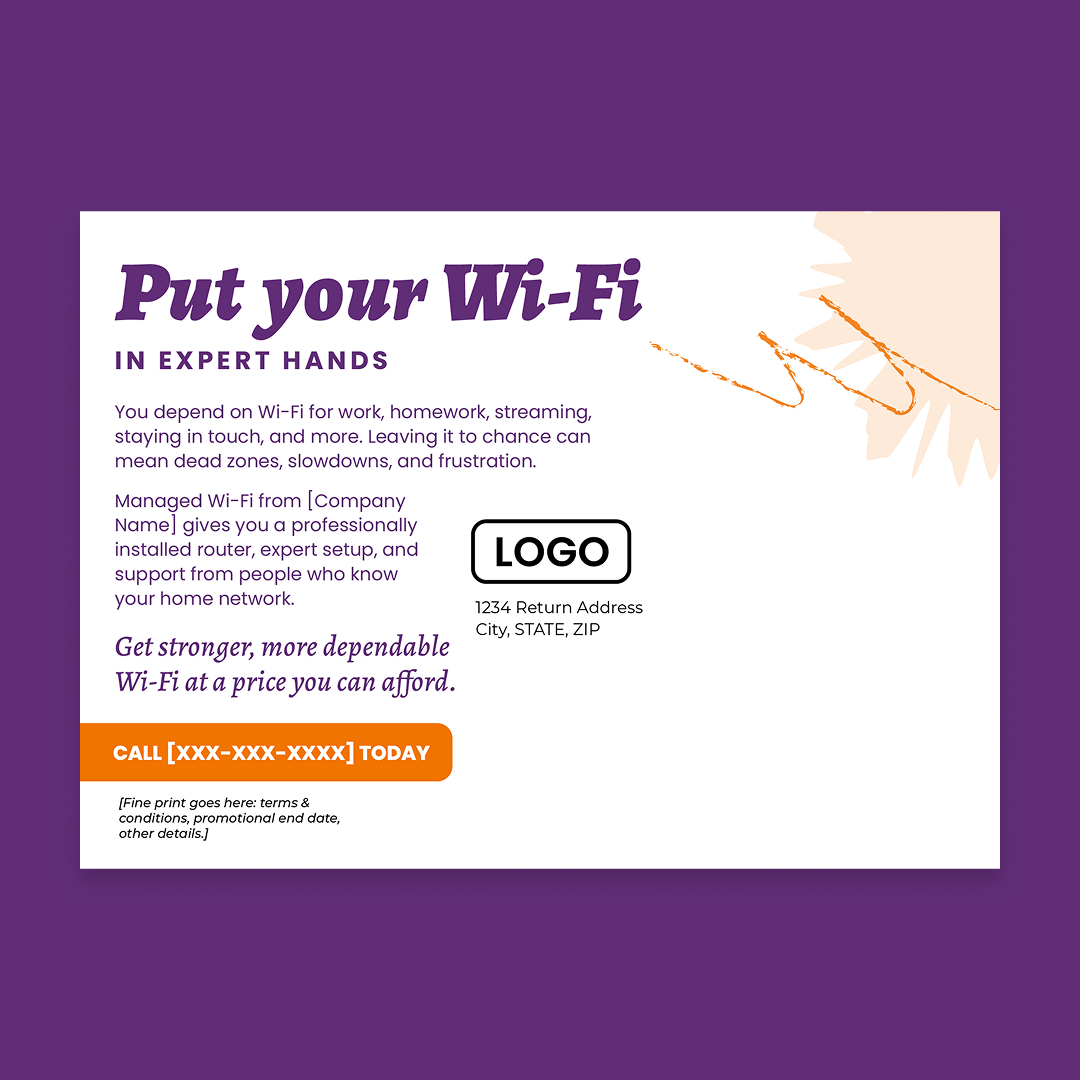 With customization, this piece will include your company name, logo, colors, and phone number.