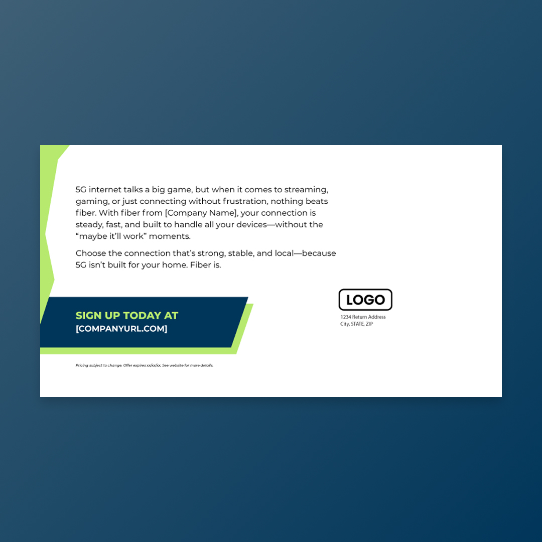 Mailed postcards are still one of the most effective direct marketing tools. Choose from multiple sizes.