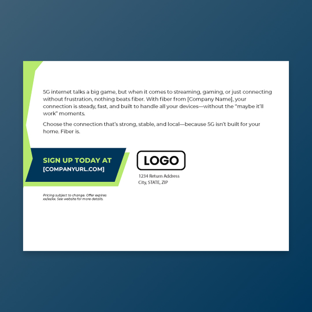 Mailed postcards are still one of the most effective direct marketing tools. Choose from multiple sizes.