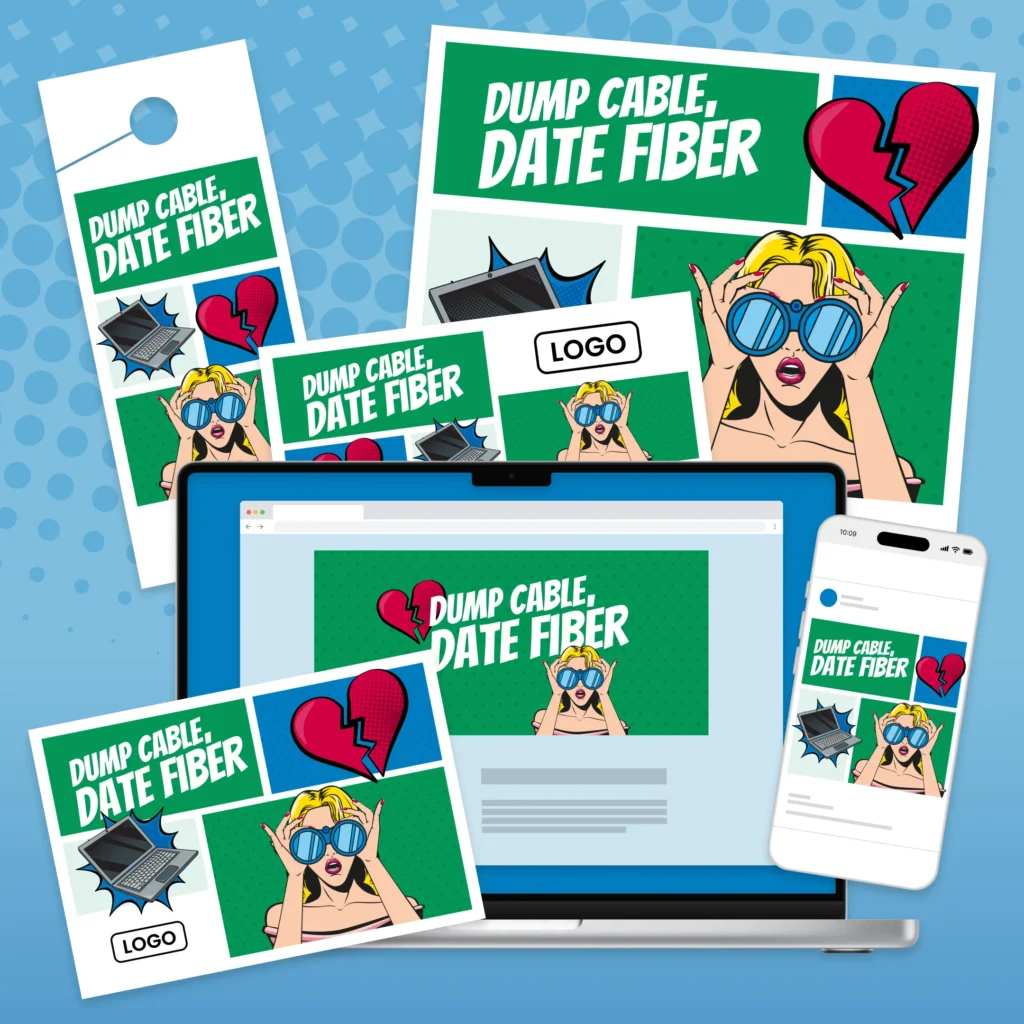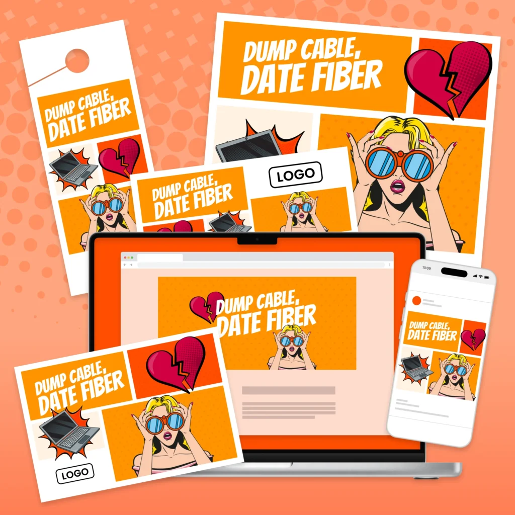 This playful breakup campaign treats cable like the ex who never quite shows up, while fiber is the reliable glow-up your home deserves. The tone is funny and sassy—but still neighborly—with clear education on why fiber beats cable in speed, reliability, and future-readiness.