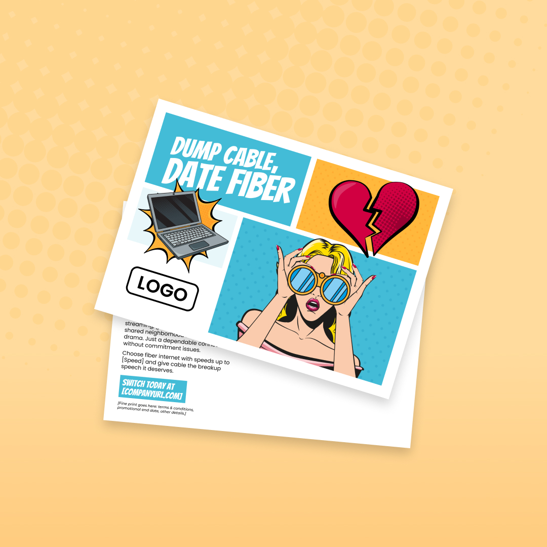 With customization, this piece will include your company name, logo, colors, website address, and speed (as in “speeds up to [Speed]”).