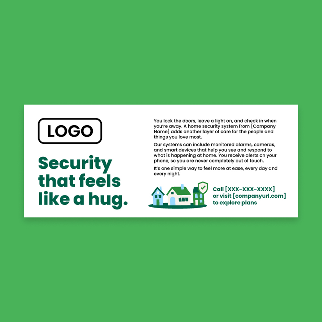 With customization, this piece will include your company name, logo, colors, website address, and phone number.