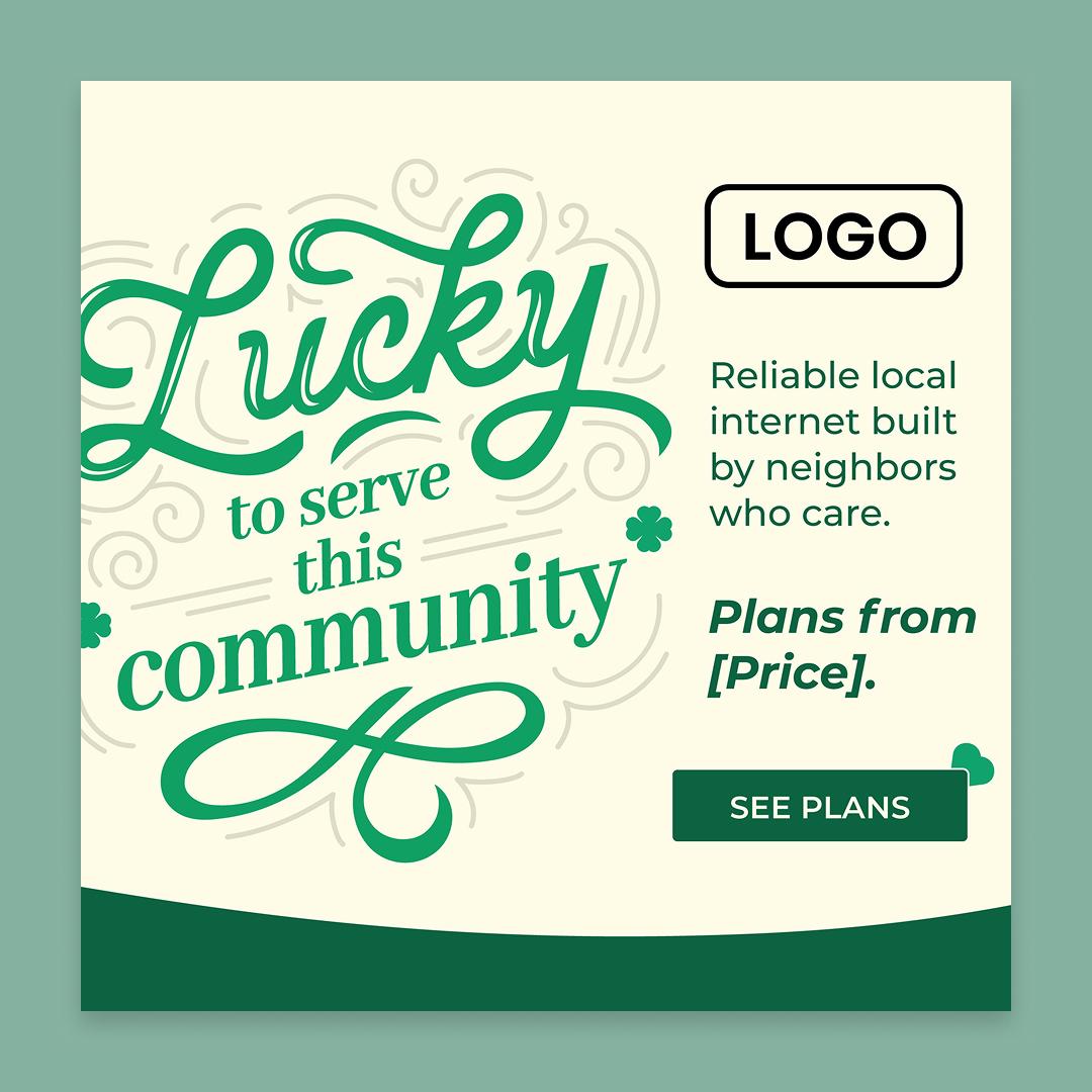 With customization, this piece will include your company logo, colors, and price (as in “starting at just [Price] per month”). If you want to keep the green design, please select the “The colors shown in the example” option below.