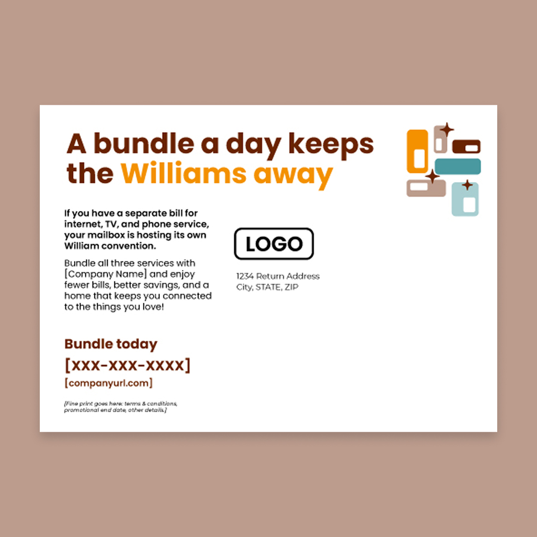 With customization, this piece will include your company name, logo, colors, website address, and phone number.