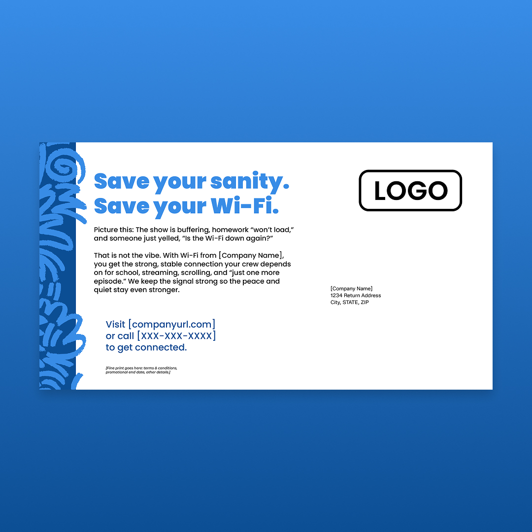 With customization, this piece will include your company name, logo, colors, website address, and phone number.
