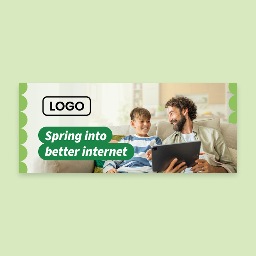 With customization, this piece will include your company name, logo, colors, website address, phone number, and price (as in “starting at just [Price] per month”).