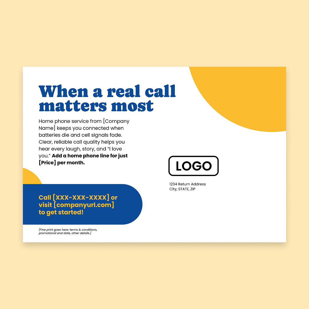 With customization, this piece will include your company name, logo, colors, website address, phone number, and price.