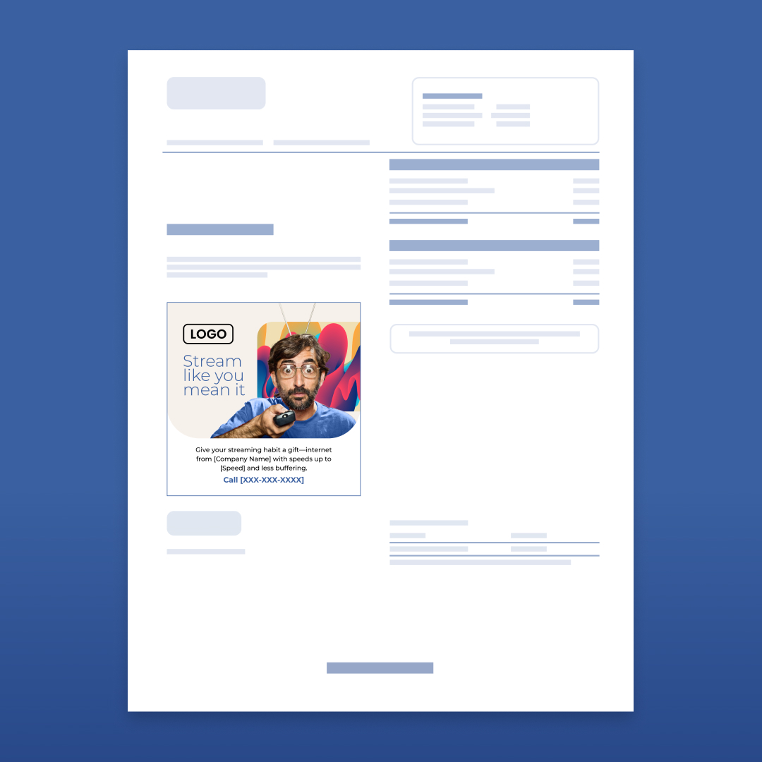 Bill ads are an effective way to get your message across when your customers are viewing their bill.