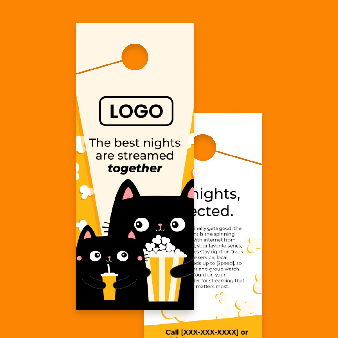 With customization, this piece will include your company name, logo, colors, website address, phone number, and speed (as in “speeds up to [Speed]”).