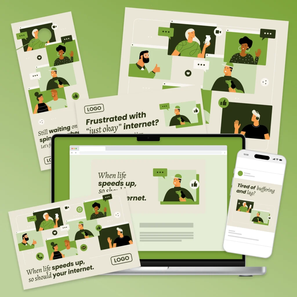 A warm, empathetic campaign reassuring members that buffering, lag, and dropped connections are often a sign they’ve outgrown their current speed, and their local provider is ready with simple speed upgrades to match their busy online lives. The theme centers on the idea that when life speeds up, your internet should too.