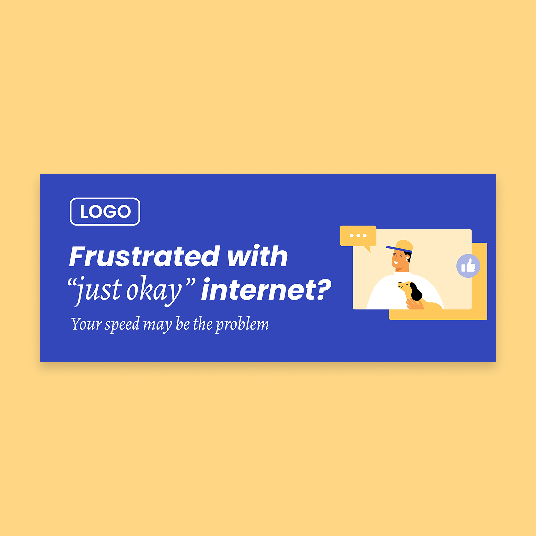 With customization, this piece will include your company name, logo, colors, phone number, and speed (as in “speeds up to [Speed]”).
