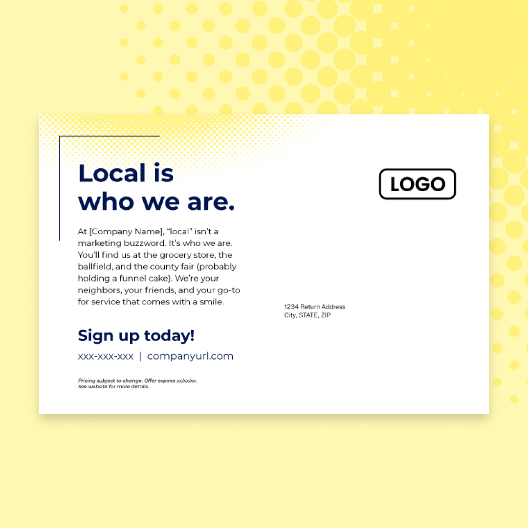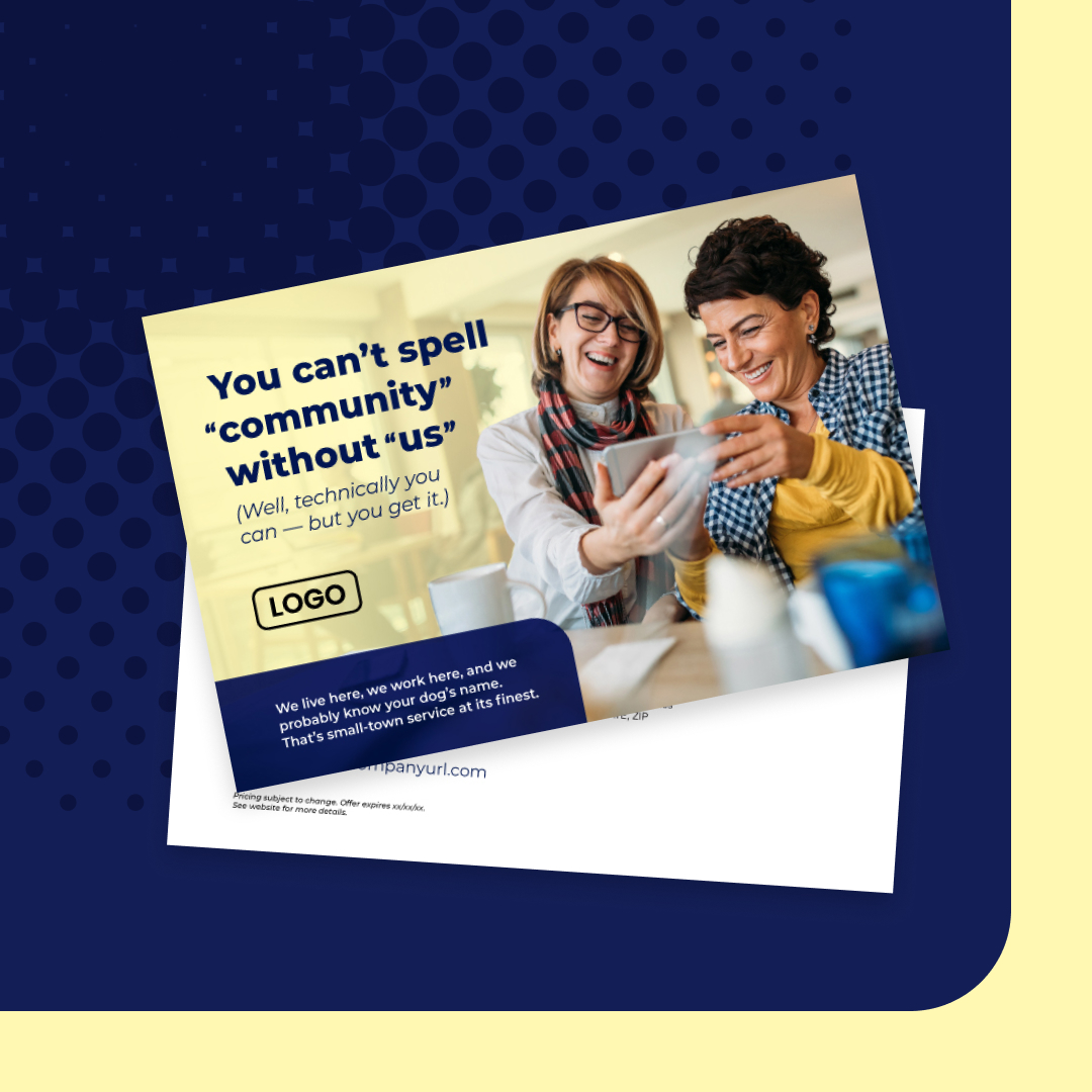 Mailed postcards are still one of the most effective direct marketing tools. Choose from multiple sizes.