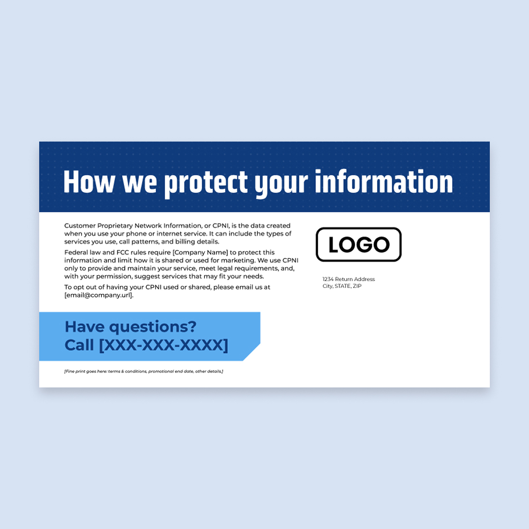 With customization, this piece will include your company name, logo, colors, phone number, and email address.
